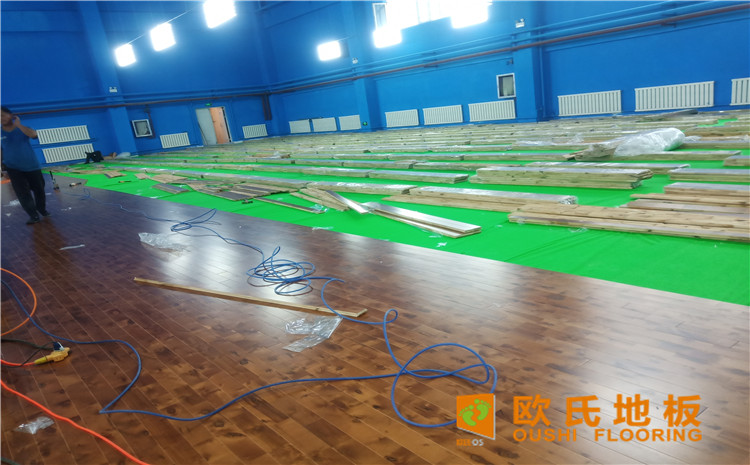 烏魯木齊北京北路東風(fēng)花苑小區(qū)個(gè)人羽毛球館木地板項(xiàng)目,項(xiàng)目選用羽毛球館專用單層龍骨結(jié)構(gòu)楓樺木運(yùn)動(dòng)地板,場(chǎng)館總鋪設(shè)面積679平方米。