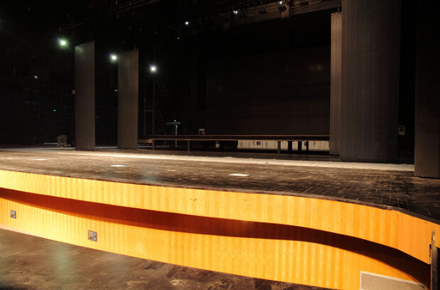 舞臺木地板之所以由這些要求,是因為,具有一定彈性的舞臺木地板對舞蹈演員,特別是京劇武打演員和雜技演員的彈跳、翻跟斗更為有利.同時舞臺的表面不易過于光滑,否則使用極不方便,有些設(shè)計人員將舞臺木地板地面做成油漆面層,這不僅是浪費,且對演員也沒有好處,尤其是芭蕾舞演員簡直就無法用腳尖立起來表演,要用腳尖旋轉(zhuǎn)就更困難了.另外為適應(yīng)各種表演效果的需要,舞臺木地板要求在主臺的后半部做出局部能活動的臺板,可以在臺面上升降表演.