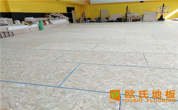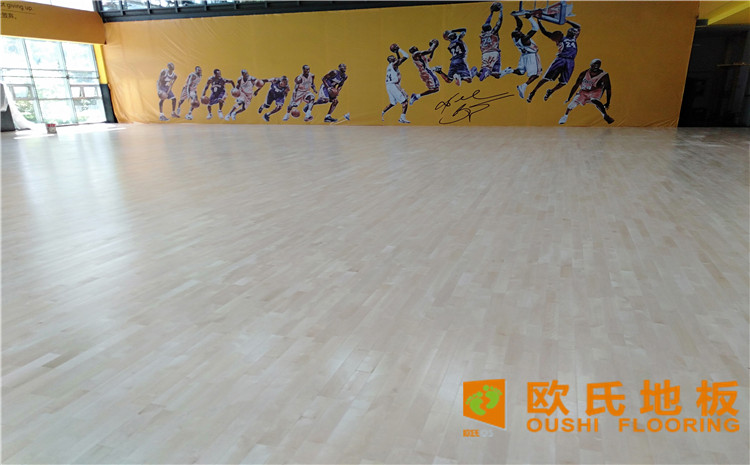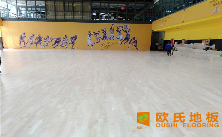 江蘇揚州海蘭德瓊花籃球館木地板項目,工程選用的是歐氏地板籃球館專用雙層龍骨結構楓樺木運動地板,項目施工面積616平米。
