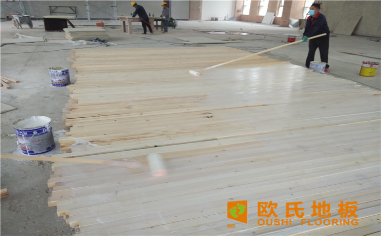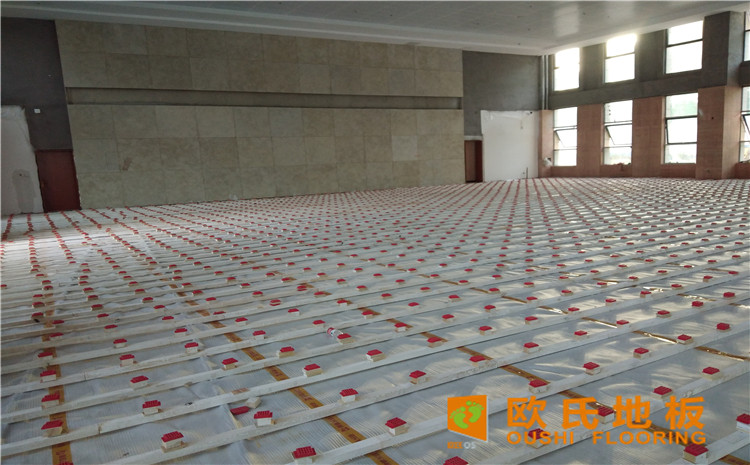 江蘇連云港消防隊籃球館木地板,項目選用歐氏地板籃球館專用單層龍骨結(jié)構(gòu)楓樺木地板,項目鋪設(shè)面積752平米。
